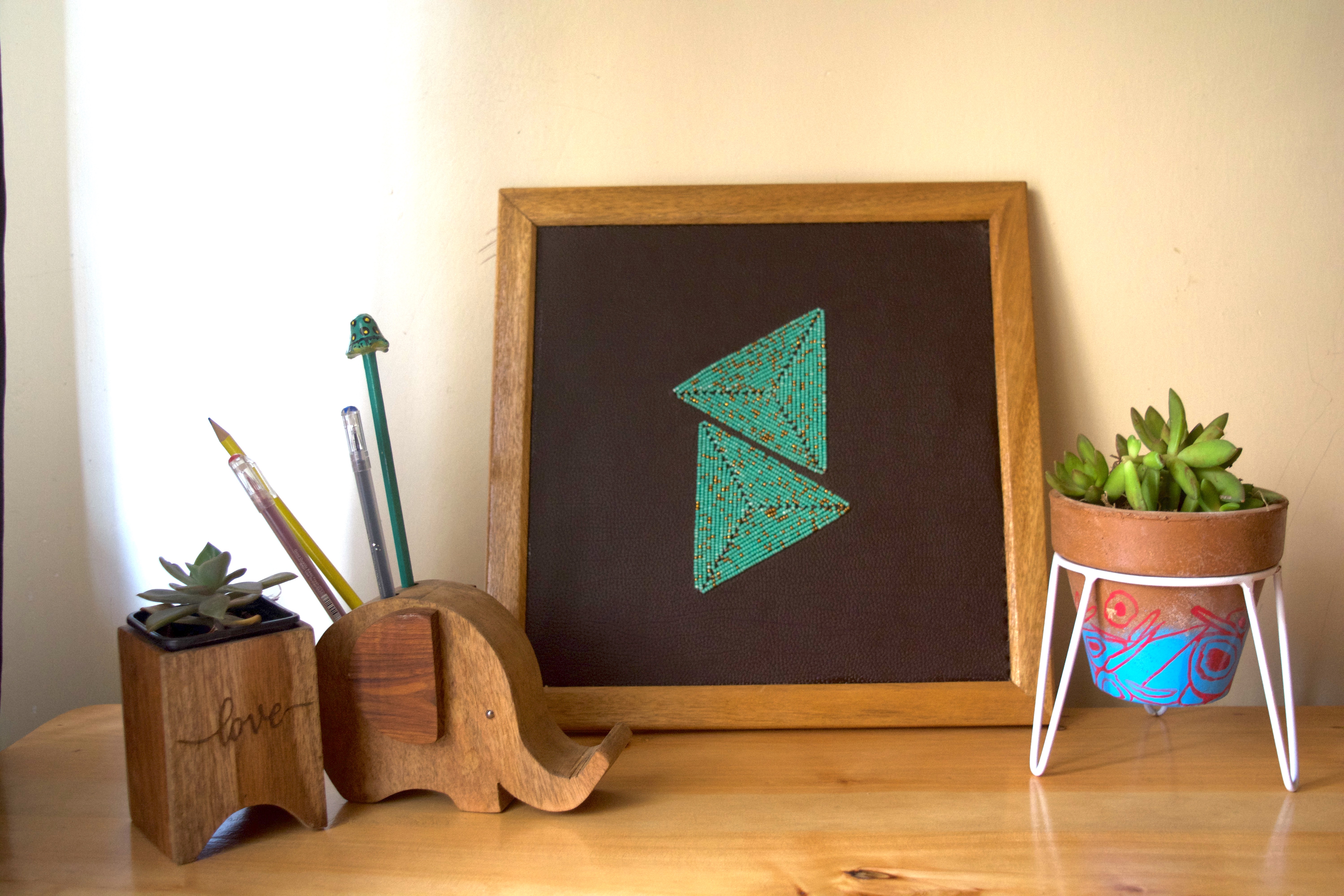 Transform your dining table into a captivating masterpiece with our exquisite handcrafted beaded placemats. Carefully designed to add a touch of sophistication to any setting, these placemats effortlessly blend functionality with aesthetic appeal. Hand-beaded placemat or wall mat in sunset colors. Available in different sizes.  Item details: Hand beaded Materials: Beads, leather  Colors: Sunset colors Size: Available in different sizes.